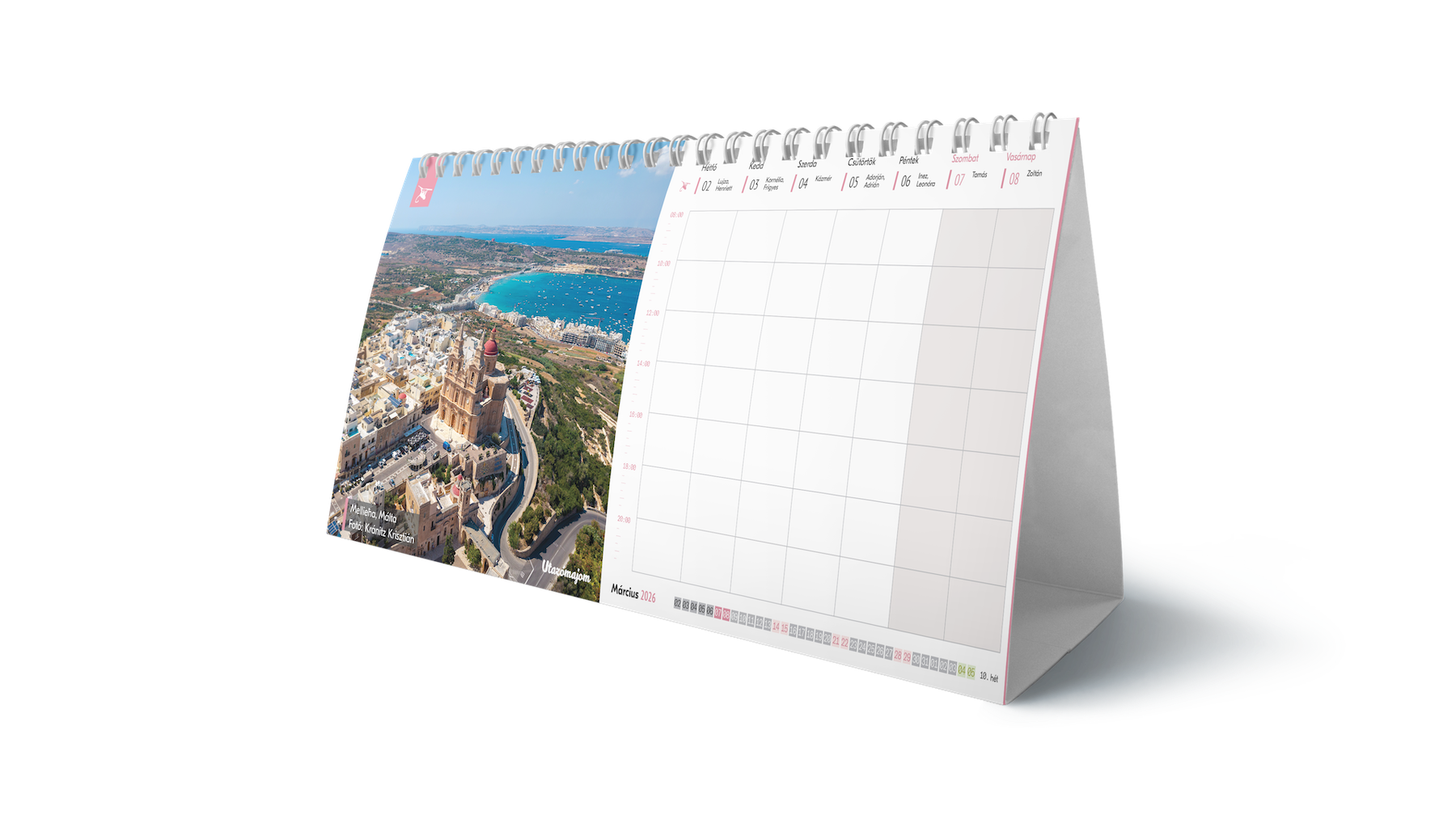 2026-os heti bontású 55 lapos asztali Utazómajom naptár